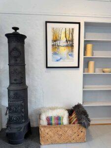 I etasjen over butikklokalene ligger et flott galleri med akvarellmalerier.